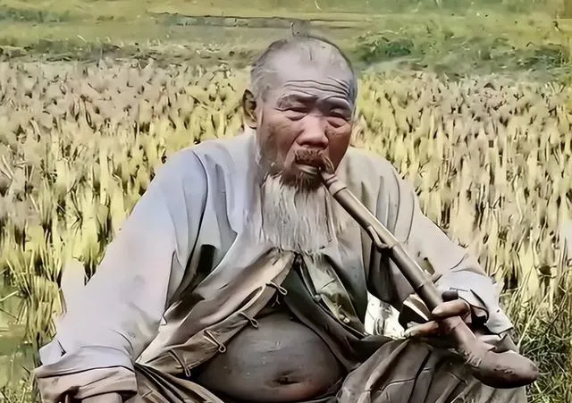 这根长杆就是烟袋,铜锅乌亮,老汉敞怀坐着,背后是半熟的稻田,他喘一口,烟雾从胡子缝里往外钻,爷爷说,干一整天,点一袋子才叫收工。