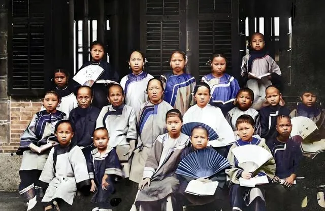 这一排女学生衣领统一,脸上画了白粉,手里团扇一色,办学堂的第一件事,就是反对缠足,解开小脚,学字识理,女子也要读书,照片就这么宣告。