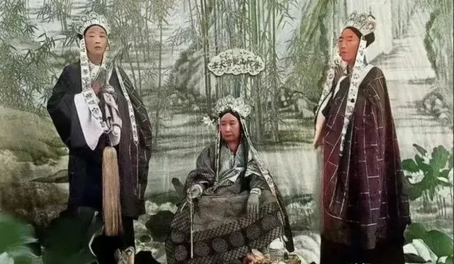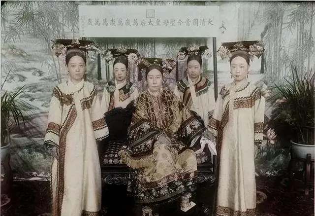 中间那位坐镇,两侧女眷立侍,衣料金烫银挑,背板上字样一溜溜,排场是排场,忙碌也是忙碌,权力越大越不轻松。