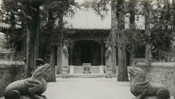 这条直直的甬道对着的是享殿,两旁石人和蹲伏的文豹镇着,脚下一层薄薄的尘,走起来咯吱咯吱的,声音小却结实,像把人往里带。
