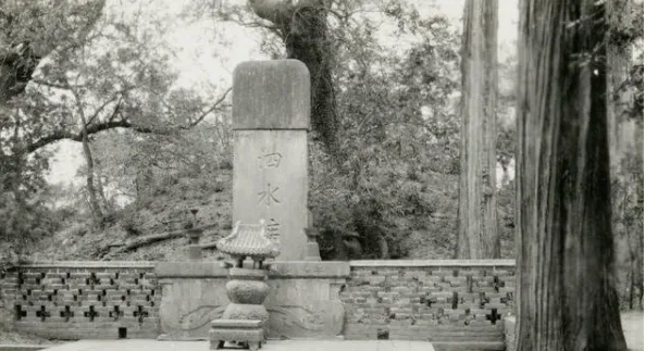 这块高耸的石碑就是孔子墓碑,上端盘着的双龙像守望,碑座前摆着香炉和供台,石阶边的苔痕一圈圈的,照片里风都静住了,只有碑阴处有一丝冷意钻出来,爷爷低声念过“至圣”,我也不敢插话。