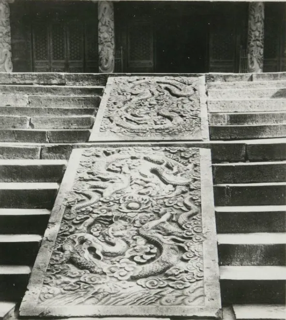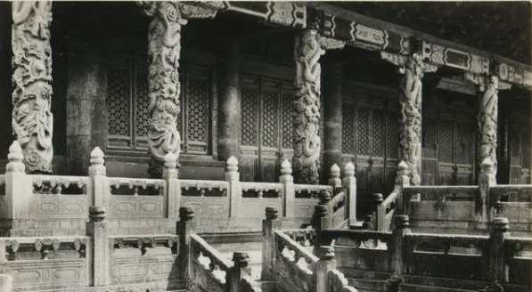 这三张挨着看最过瘾,先是雕栏一圈圈围着,接着廊柱排成阵,再到御道上两块盘龙石板,龙身在云里翻,小孩踩上去总要被大人轻轻拉住手,说别闹,走边上去。