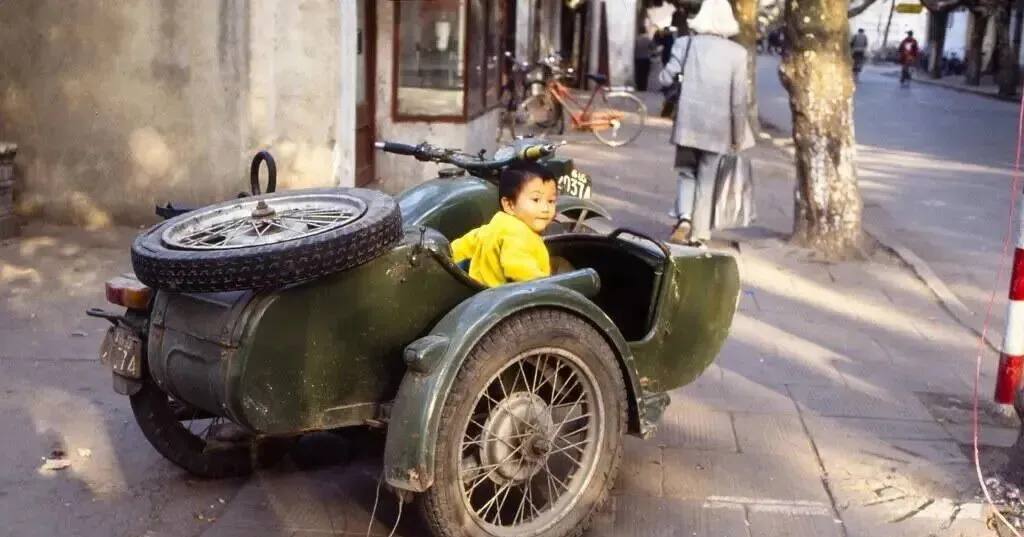 这个叫边三轮,一头摩托一头侧斗,斗盖上捆着备胎,铁皮刷成军绿色,螺丝外露,孩子缩在座里探头望我,眼睛像玻璃珠,司机一拧把,发动机嗡地叫一声,风把围巾吹起来,现在路上看见多半是复古玩家,那时可是真正拉活计的主力。