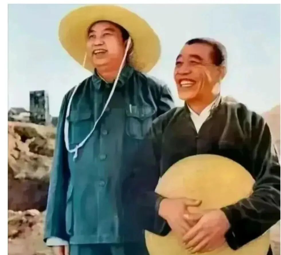 这个是田间随拍,左边的大草帽一下子抢眼,宽檐在脸上投下一圈阴影,右边人抱着一顶没戴的帽子,笑得露出门牙,可,最有趣的是手势,手指轻搭在帽檐边,像是刚从地里起身喘口气,汗味里掺着新土味,我小时候跟着外公割麦,见他也这么笑,嘴里嘀咕今年麦粒沉不沉。