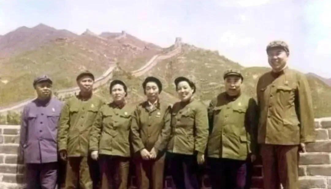 图中这叫长城留影,城砖边风大,帽檐被掀起来,队伍从左到右排得齐齐整整,笑容被吹得有点眯眼,后面的城脊一段接一段,逶迤到雾里去,导游举着小旗没进镜头,想来就在旁边催快点,底片不便宜,拍一张要合群里人的脾气,吵两句也正常,等回旅社冲洗出来一看,还是觉得值。