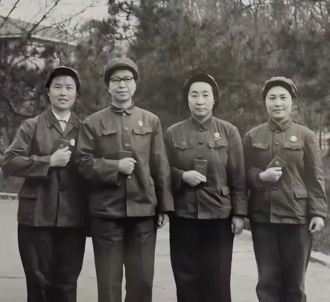 这个四人并排的定格叫留影加证件,口袋里别着小徽章,手里拿着小本本,衣扣一粒不差地系好,表情不紧不慢,像是要去参加学习会,妈妈指着照片笑我,你看站第二个的那位,眼镜片后头的目光最稳,像班长,话不多,但关键时刻顶得上去。