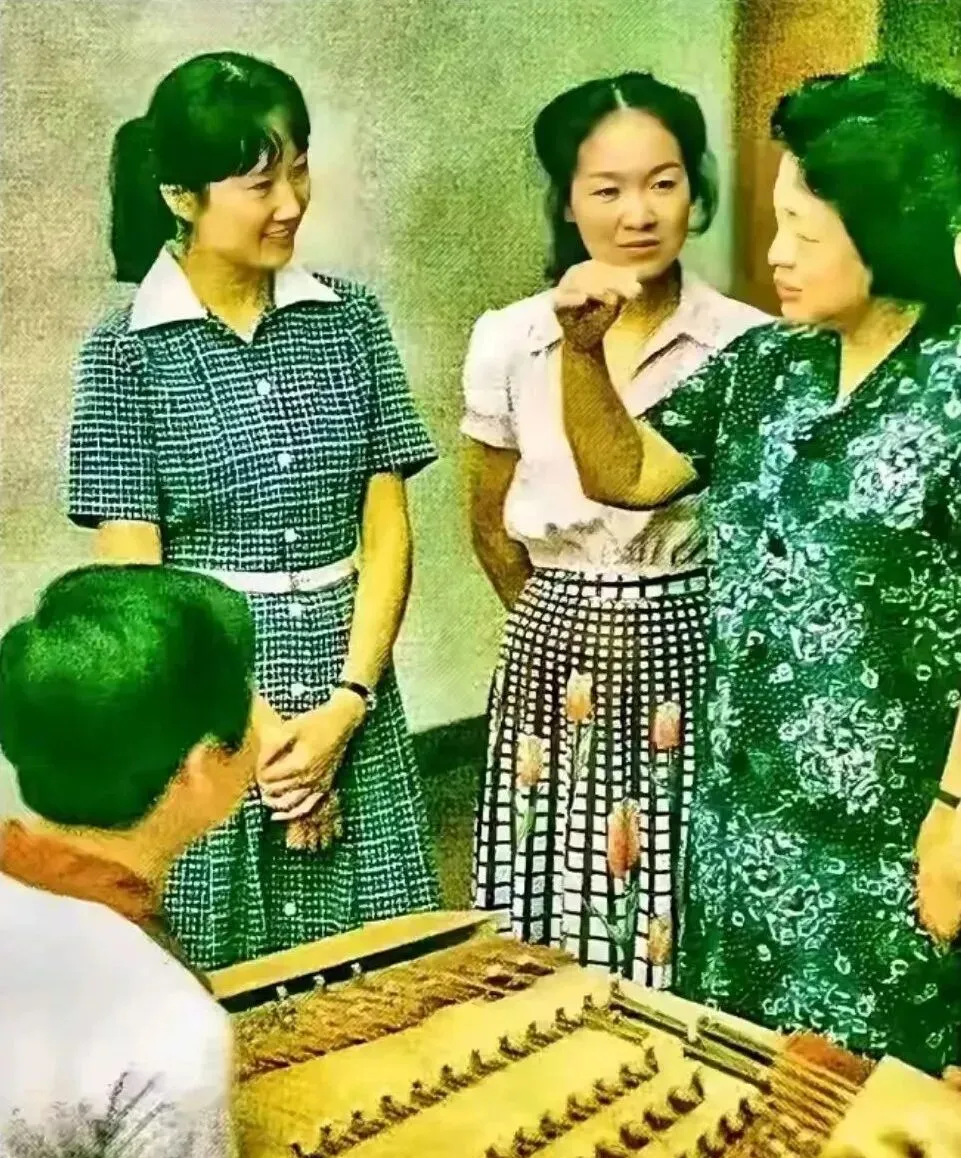 图里的教室一角叫排练点评,木色扬琴静静躺着,琴码整整齐齐像一队小兵,三位姑娘站在侧边,格纹裙、花呢裙,辫子垂在肩头,老师抬手比划,手腕一翻,神情认真又温和,小时候我蹲在窗台看过类似的排练,琴槌落下来“嗒嗒”两声,屋里像起了小雨,一点点把人心拍得服气。
