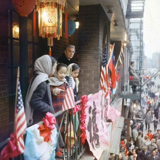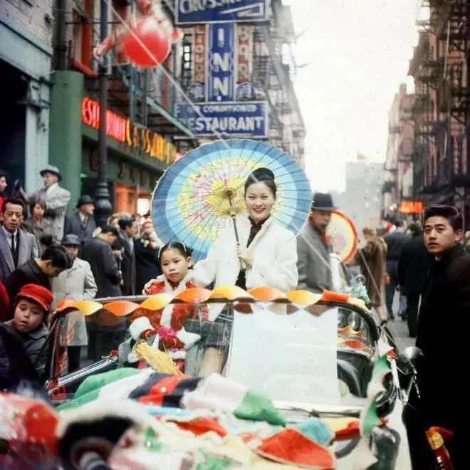 1960年,美国纽约唐人街的春节彩车游行,在纽约的华人迎来了新的一年。