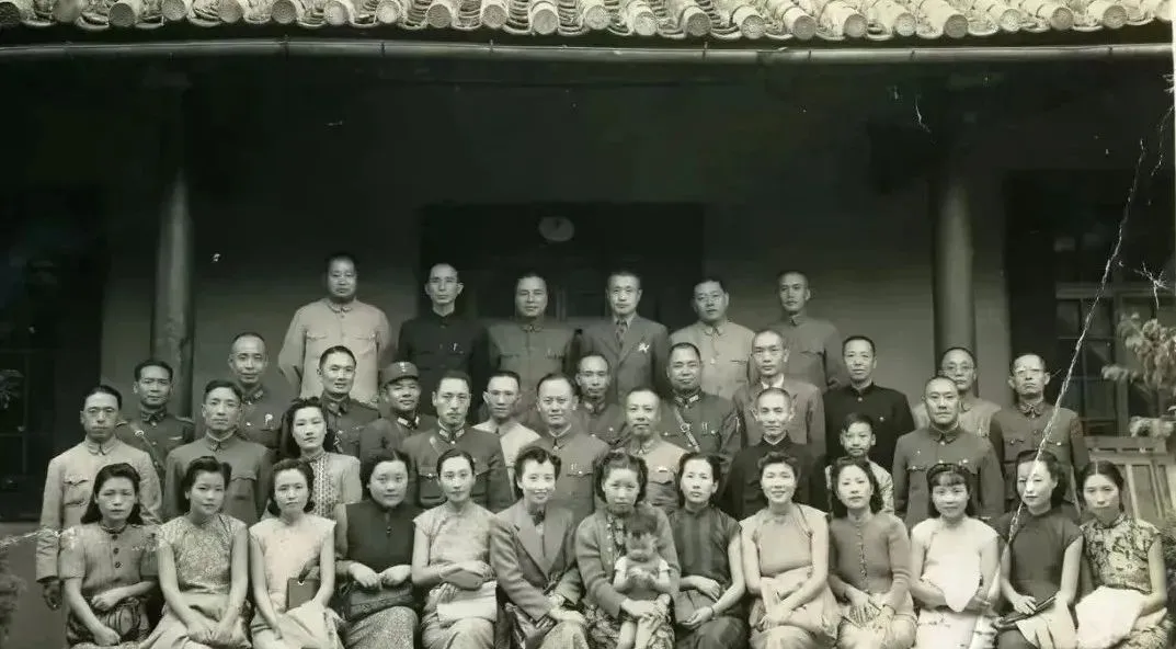 这张院子里的合影有意思,前排是军装与旗袍并坐,后排是灰布与西装并立,藤椅、雕花门、槐叶斑驳,影影绰绰全是生活气,奶奶说那会儿拍合影,位置都是长辈安排好的,谁坐谁站都有讲究,别多话,跟着站稳就行。