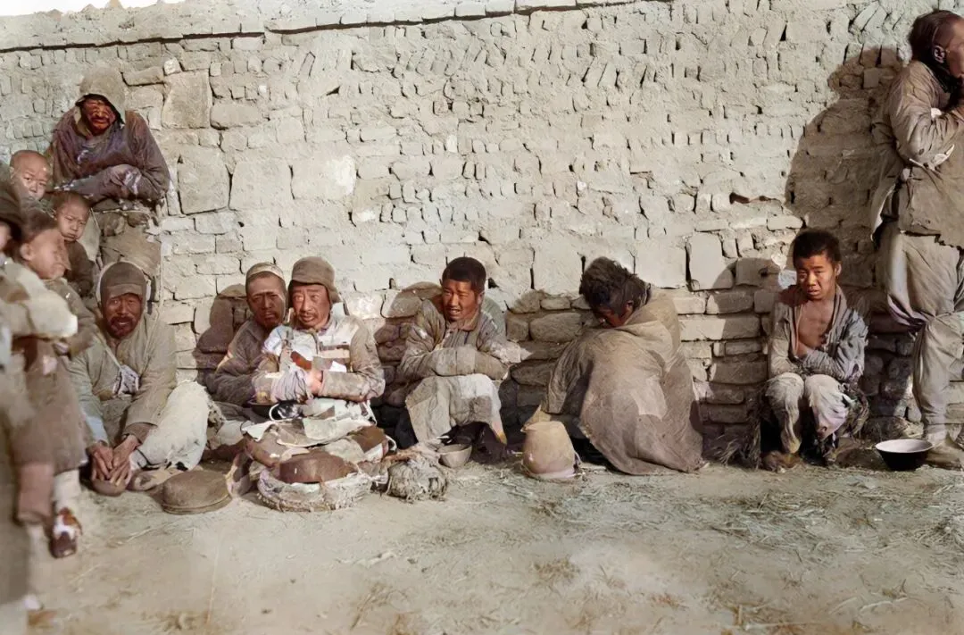 图里围成一圈的粗陶碗,边缘全是豁口,叫讨饭碗,冬天手指冻得通红,袖口里哈气取暖,粥一到嘴就凉了半截,那时候,能喝到一口热的,已经算运气。