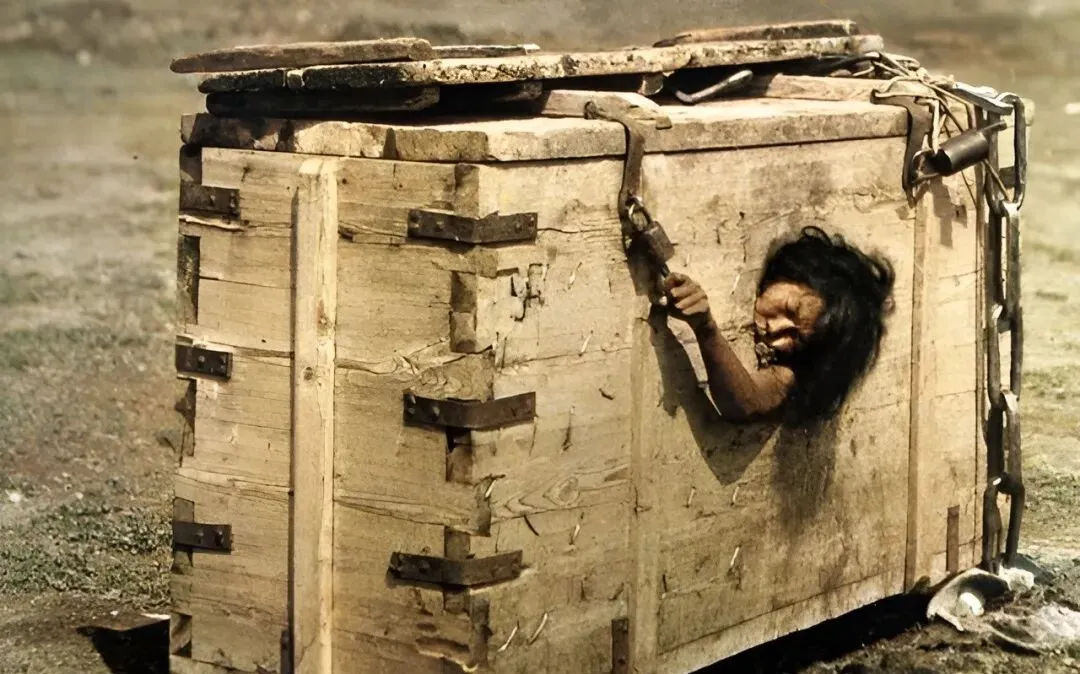 这个大木匣子叫囚箱,四角铁扣,外头再上锁,人被塞进去伸不直腰,只有一个巴掌大的洞透气,太阳一晒,憋得人头昏眼花,这种惩罚,不是教人改错,是逼人绝望。