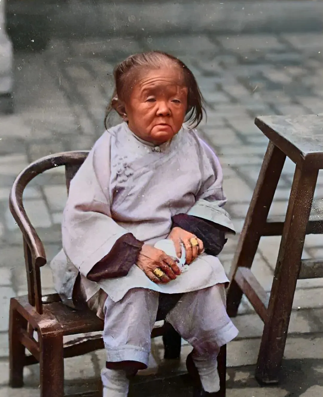 这把椅子上的老妇人,脸像娃娃,手上金戒指松松垮垮,医生稀缺,叫不上名的病就被叫“怪病”,她端着碗盯着远处发呆,院子里风一吹,落叶滚成线。