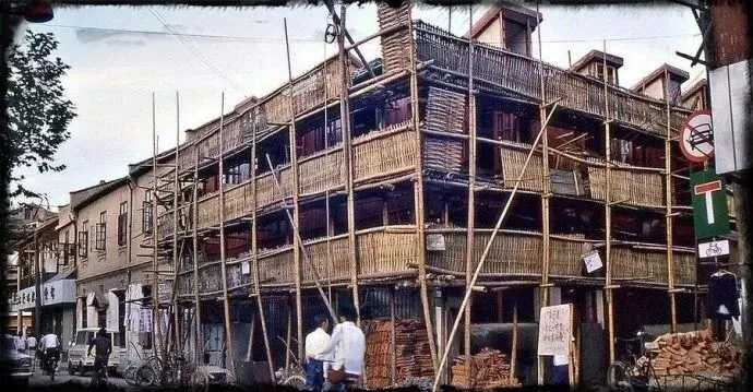 1986年,施工时的围挡还是竹子做的