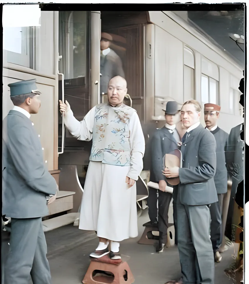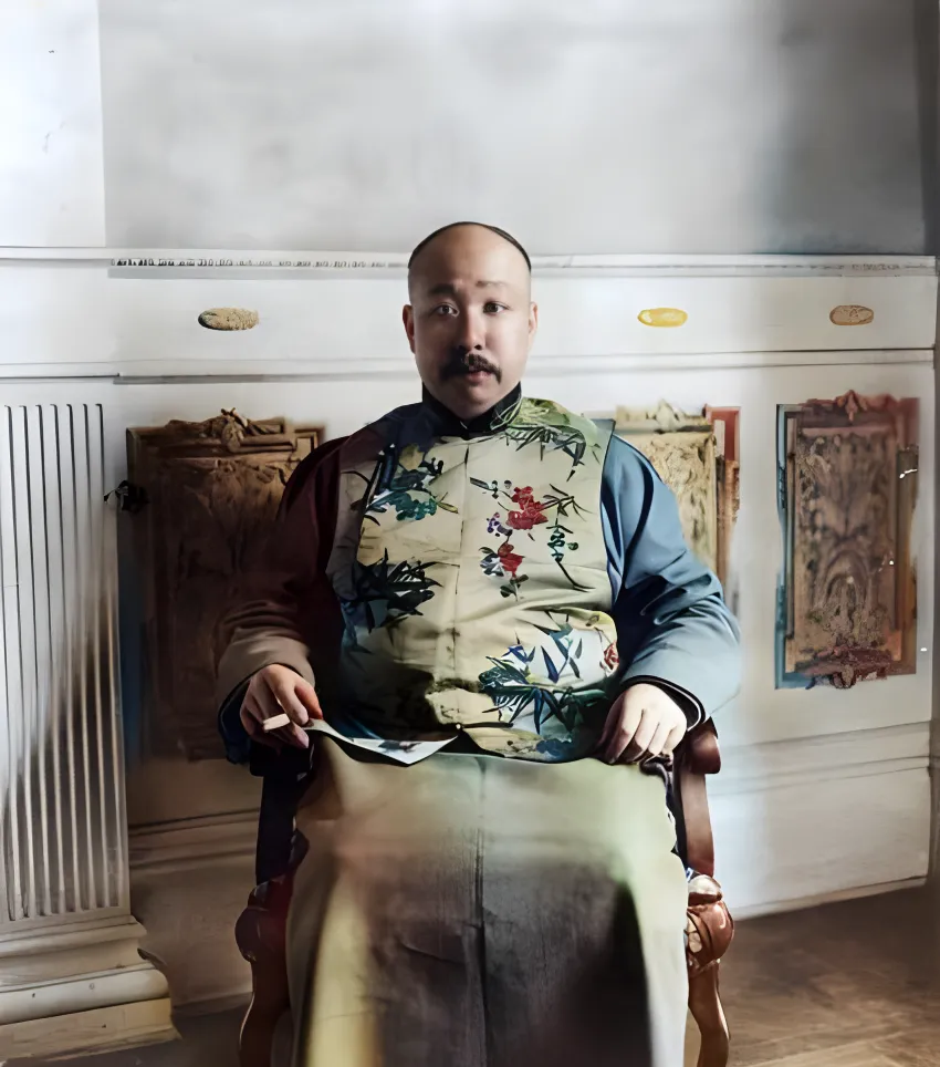 图中这位叫梁诚,淡黄缎面马甲上点着红蓝两色小花,靠椅把手雕着卷草,右手指节圆厚,像常年写字盖章的手,眼神不飘,定在镜头前却没僵住,这人做外交的劲头从气口里就能看出来。以前出洋要先坐洋船再转火车,路上得一层层打点,现在一张机票一天就到,路短了,见识却也要自己去撑。