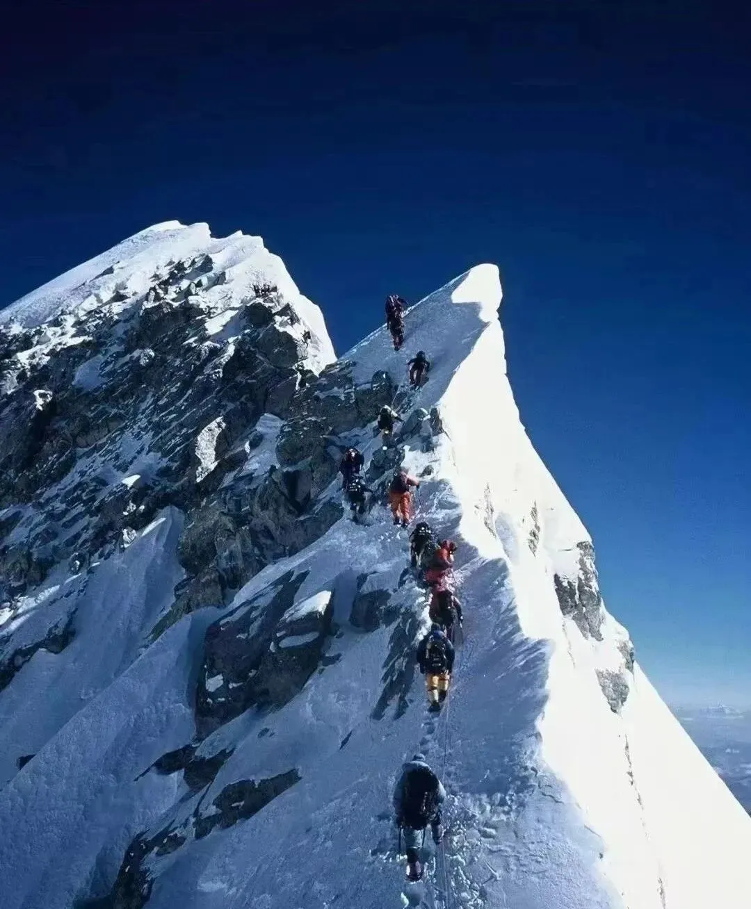 这条细得像刀背的雪脊叫**“希拉里台阶”一线**,队伍把绳结一段段传上去,冰爪咬在雪里发出咔咔的声,手掌一松人就要被风推下去,外公说攀山这事啊,不是去征服哪座峰,是在和怯场的自己掰手腕,以前看到登顶的新闻得等报纸,现在你拿手机一刷,几分钟就能看全程。