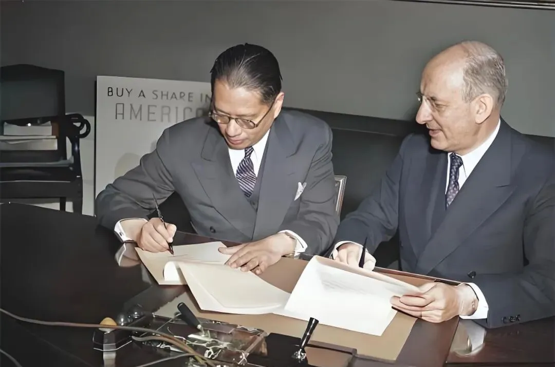 图中这张桌子是外交场的道具不假,最扎眼的还是那支黑色钢笔,左边这位低头落笔,袖口银亮的袖扣在灯下闪着光,桌面摊着厚厚一叠文本,边上摆着麦克风和电线,像一串紧绷的神经,签完这页纸,钱粮和航线就能落到真刀真枪的战场上去,这一瞬的安静,背后是前线的炮声在等着回响。
