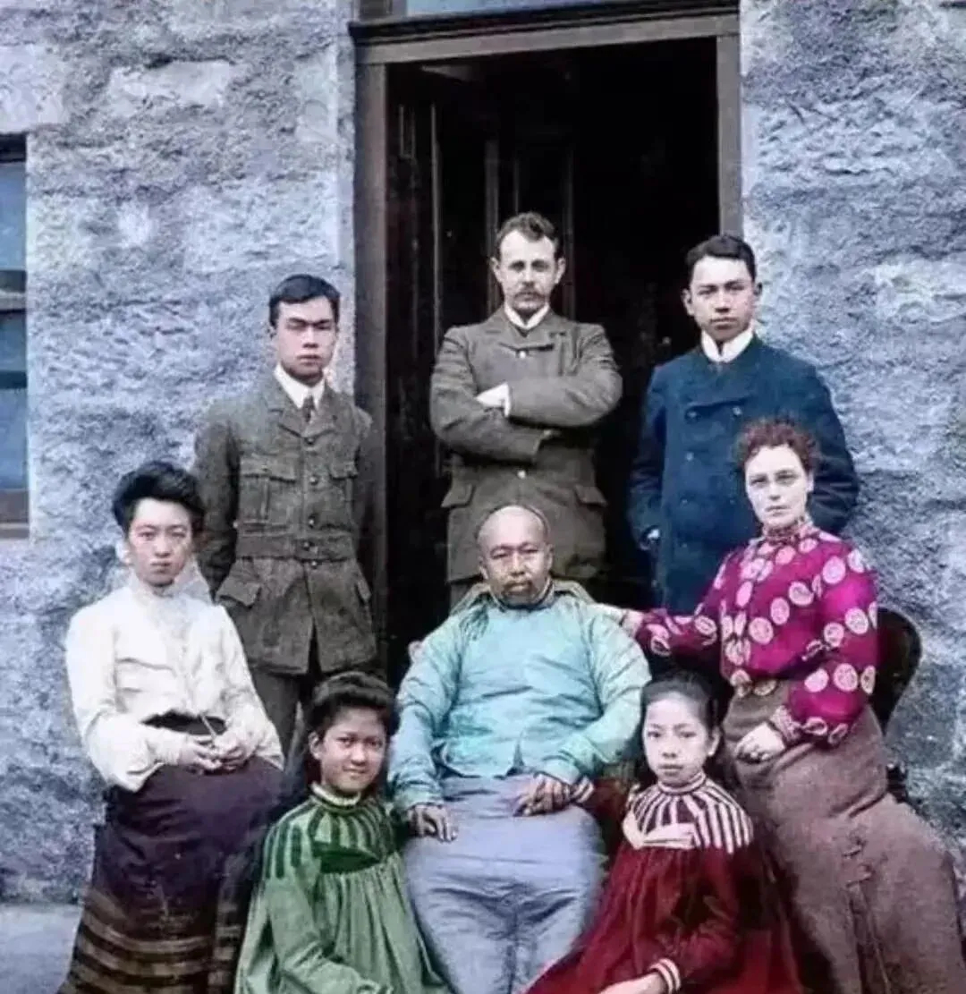 这张彩色老照里中西同框,襟袍配洋裙,叫留影馆的异风照,衣料子看着就讲究,亮而不扎眼,外婆说那会儿新鲜东西往家闯得快,先换衣裳,再换规矩,桌上的茶点从瓜子变成了饼干,孩子嘴也就叼了。