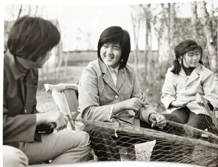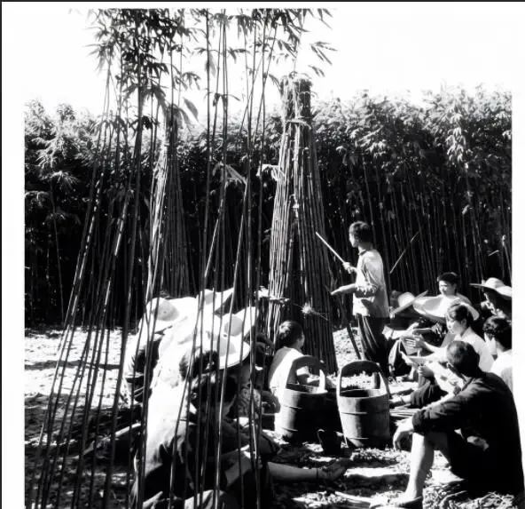 80年代固始县陈林公社组织农村妇女编织渔网售卖