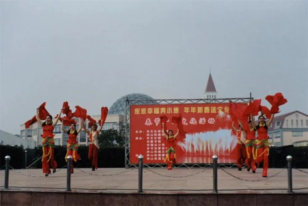 慈溪春节的温暖与热闹,不仅藏在年夜饭的香气里,也留在一场场充满温情和欢乐的文艺演出中。从城市社区到乡镇广场,曾经纷纷举办春节团拜会活动,以丰富多彩的形式和节目,传递着温馨年味与诚挚祝福。2001年浒山镇举行迎春联欢会