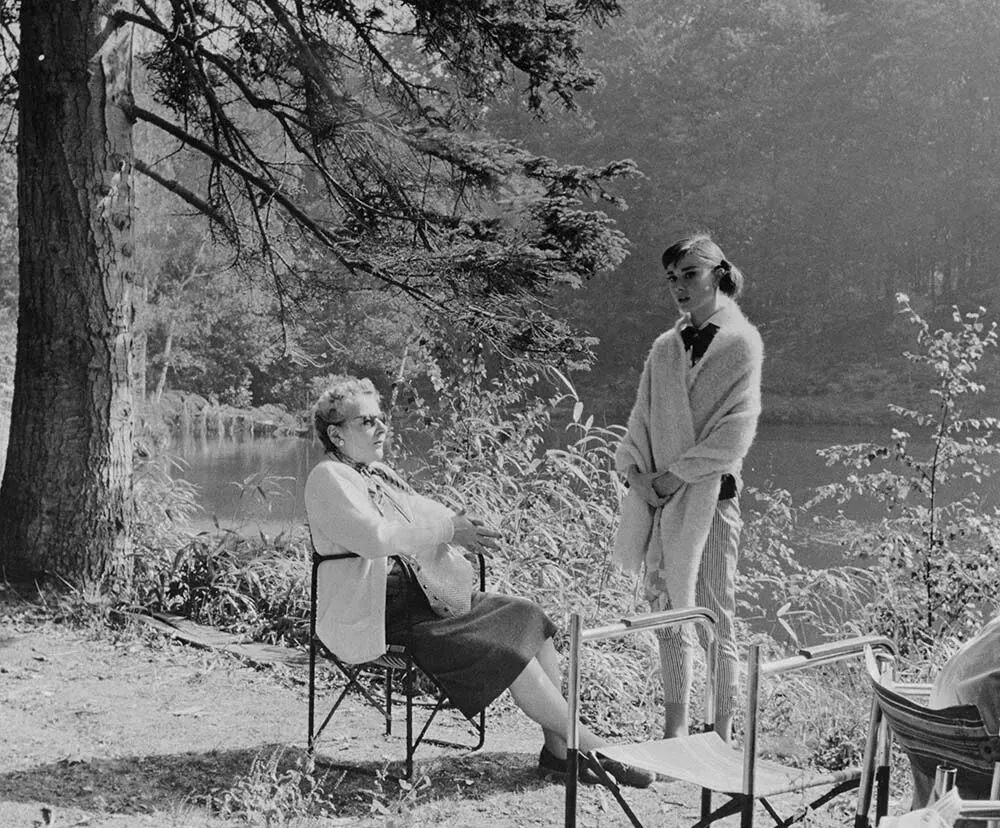 这张在林荫下取景,水边的风把草吹得细细发亮,女儿披着毛绒披肩站着,妈妈坐折叠椅上打量她,像在说别着凉了,这种野外轻松的合影少见,家里人一边拎着保温壶一边找阴凉,讲两句琐碎的话,比红毯上的镁光灯更暖。