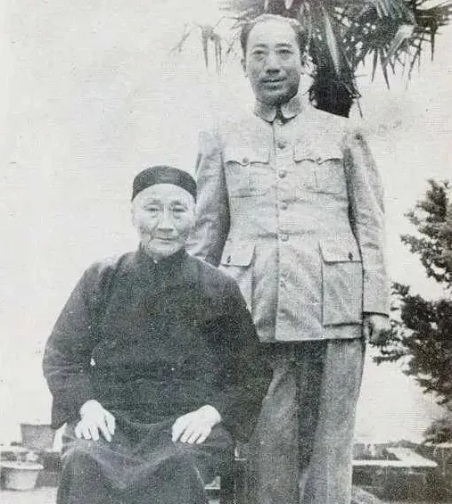 院子里有棕榈影子,老人穿着素色长衫坐着,儿子一身军装站在身边,表情稳住了没让自己笑太开,像怕露出孩子气,妈妈看儿子的眼神却藏不住,要不是镜头在,准得伸手把他肩章扶正两下。