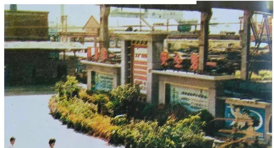 这张彩照里,牌楼边的红字特别抢眼,围墙里头堆满了电缆盘和钢材,午休的时候工人席地而坐,拿搪瓷缸就着咸菜吃两口,响铃一打,人人抖抖袖口起身干活,手上的油渍怎么搓也搓不干净,可谁也不嫌脏。