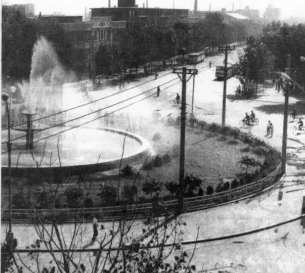 这圈圆圆的就是铁西广场的喷泉,夏天一开,水柱直冲天,周围一圈杨树叶子被水雾打得发亮,孩子们趴在栏杆上伸手去够,电车沿着边儿慢吞吞地过,车窗里的人都要看两眼,现在广场还在,喷泉的力气小了,心里的浪花却一下子就翻起来了。