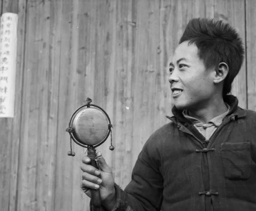 这个小鼓叫拨浪鼓,卖糖人手里一摇,嗒嗒两声就把半条街的娃招来了,圆木鼓面油亮亮的,边上两粒坠子敲得有板有眼,奶奶说听见这声就晓得要看牢兜里的铜板了,不然你舅舅能把一周的零花全换成糖人。