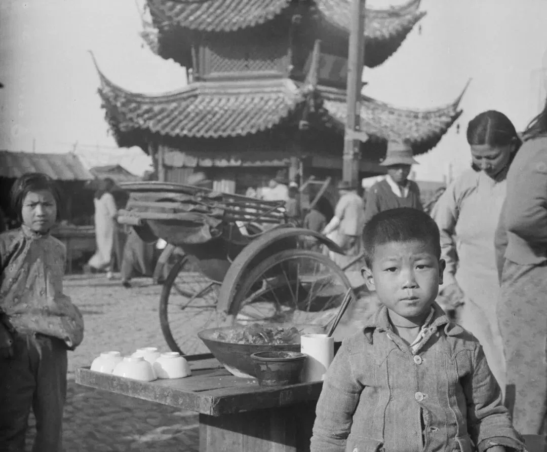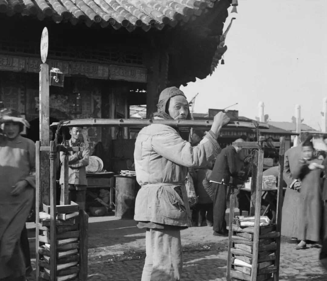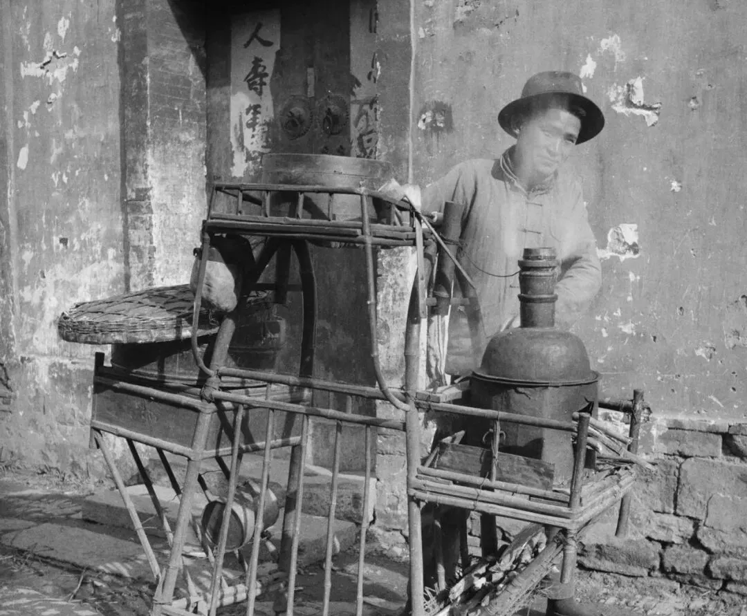 40年代南京老照片,街头的那些小贩们,这些风味小吃你吃过几种。