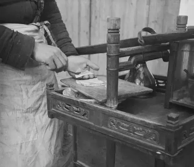 这个转轮加案板的叫拉面车,底下烧柴,上面起劲摇轮,面条从粗到细一根根拉下来,师傅围着粗布围裙,膝盖一顶案沿,手腕顺着力道一抻,面就活了,爸爸说那会儿的面筋道,不靠改良粉,全凭手上气力和醒面的时间。