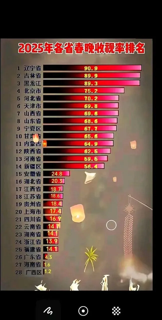 说到春晚,就会有收视率这个说法,特别是近几年,各种收视率的播报层出不穷,不管数据真与假,但是有一点可以肯定的,那就是北方的收视率远远高于南方的收视率。