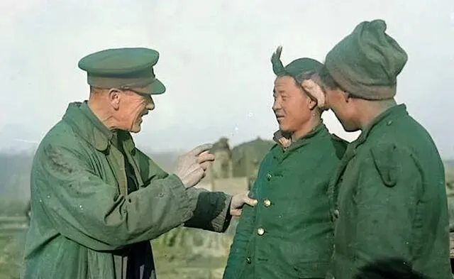 这个场景里头,军官举着手指头比划,像在说两三句要紧的话,劳工把棉袄最上头那颗扣子捏着,脸上挂着点腼腆的笑,耳边的风呼啦呼啦的,帽檐全被吹翻了边,我小时候跟着大人跑集体工地,见过类似的手势,先伸两指,再往地上一点,就是要这块要马上搬,懂不懂英文不打紧,活儿在手上,节奏就跟上了,那时候靠的是眼神和身子骨,现在嘛,手机里一条消息就全明白了。