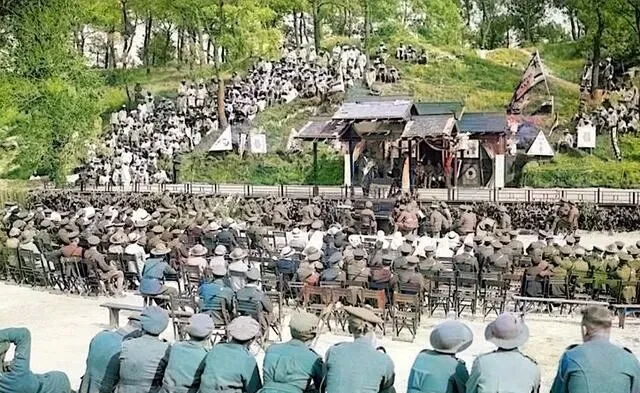 这个临时台子就是露天剧场,前后两层帘子,绸子上挂着旗子和标语,坡上坐满了人,台下的椅子一行行码齐,军帽挤在一块儿像一摞摞蘑菇伞,锣鼓一响,后排的人就把身子往前探,谁还不想乐一乐呢,白天背木头扛麻袋,晚上图个热闹,唱的是什么不重要,坐在一片人声里,心就不那么漂,我妈看老照片时笑着说,要是有一锅红糖姜汤端过去,多好。