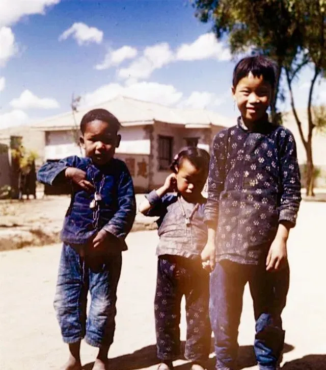 再说这张照片的光,天空澄蓝,白云稀薄,院墙上刷着标语,字已经糙了,生活却不糙,姐姐衣服和妹妹裤子的布料花色一样,多半是缝衣人把剩下的条子拼凑到一块儿,穿在一家人身上就成了“套装”,穷也能穿得体面,这句话换现在听来依然有点暖。