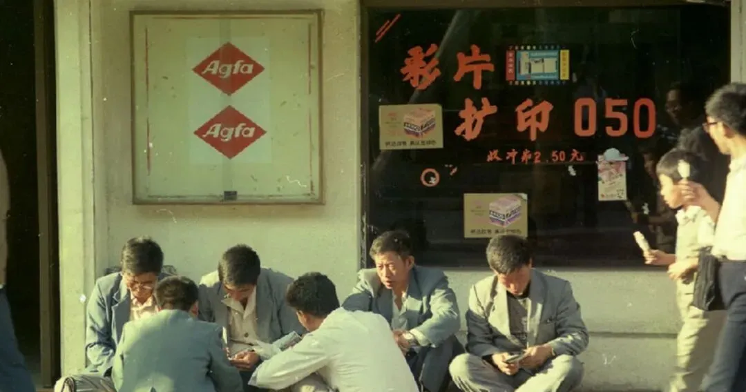 这个黑底红字的门面就是彩色照片扩印店,玻璃后贴着价目,字写得直来直去,伙计们蹲在门口数相片,手里夹着一小撮取件单,老式放大机在里头轰隆隆的,灯一会儿亮一会儿暗,爸把我站相馆门口那张半身照拿来扩一张八寸的,回家用图钉摁在柜门上,奶奶看一眼笑一声,说这小家伙眼珠子会说话。