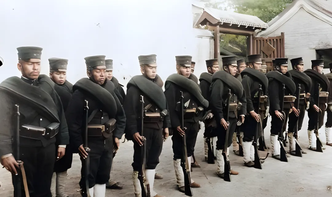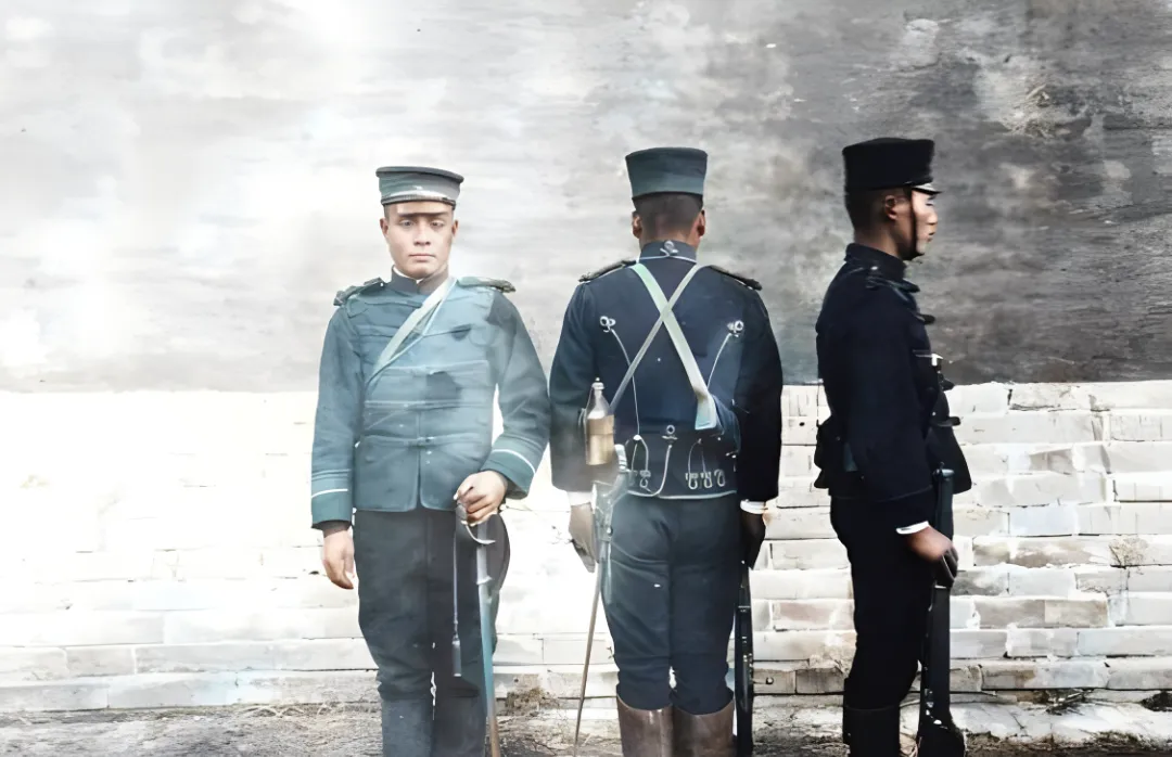 以前这身行头是故意给人看的,站在洋人镜头底下,一队人整齐划一,恨不得连眨眼都整齐,现在想想,整齐归整齐,历史却不会自己洗白,照片越清楚,心里越明白。
