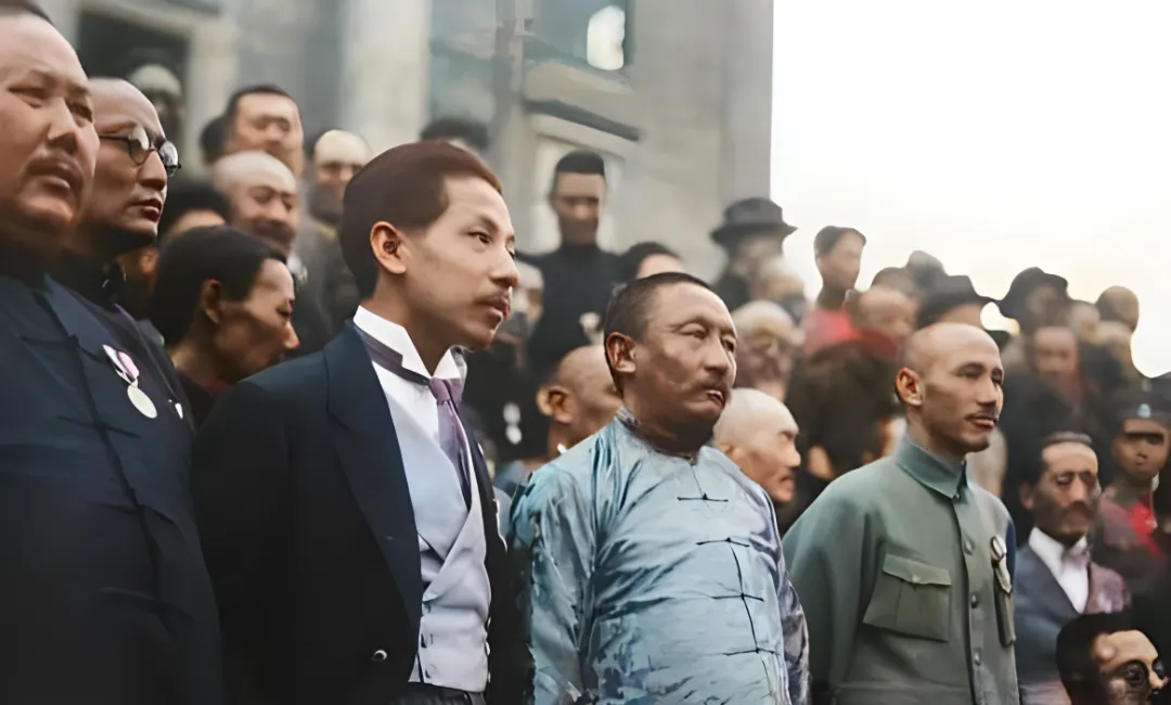 这张人挤人的大场面是国民会议散场的合影,前排穿礼服的、穿长袍的、穿军装的,都在镜头里挨着站,脸上各有心思,风把边上的帽檐吹得微微翘起,台阶上人头一片,像年集一样热闹。