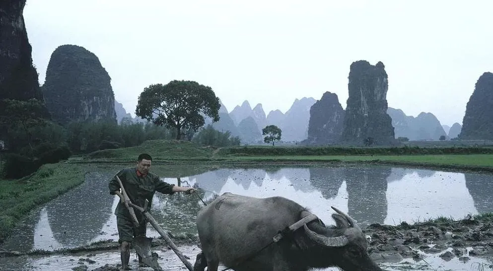 这个插在木梁前头的叫犁铧,黑亮黑亮的,牛脖子上挂着轭,男人裤腿扎进泥里,手里握着犁把,嘴里吆喝一声,牛尾巴甩一下,泥浪就翻过来,奶奶说,春耕看天,天晴三天就下田,过了这茬就得等。