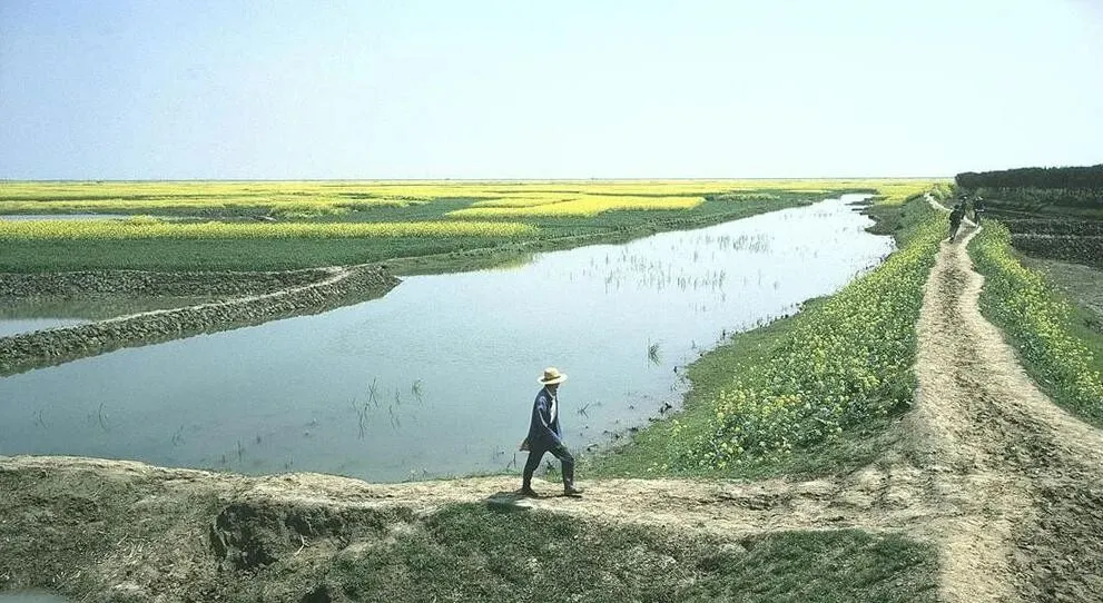 这块镜子一样的是水田,刚插完秧时最美,天色一片紫,山影压得低,田埂窄得只够一脚,脚底的泥一黏人,鞋就被拽一下,晚饭前走这里,鞋印排得整整齐齐,像写字。