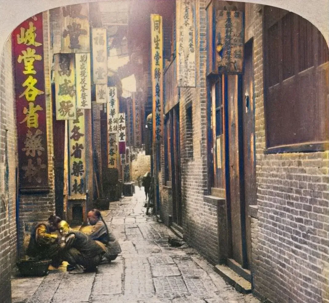 这一溜窄巷口都是药铺的招幌,写着各省药材、同生堂、广盛号,木牌子被风吹得咔哒咔哒响,巷底有两个伙计蹲着拣药渣,袖口上沾着黄黄的粉,我第一次去老城厢买草药,掌柜拿小秤一拨,砝码在盘里叮的一响,说小伙子,这味要少放点,现在中药店里打印标签,味道还在,可秤声听不见了。