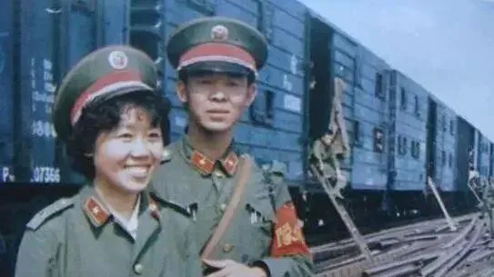 图中这对叫前夜的合影,军帽压得低,领章整整齐齐,火车皮厢在后面一列一列往远处拉,姑娘笑得像一束花,男人眼神却往侧里收,妈妈说拍照那会儿都不太会摆姿势,笨拙的好看,后来这张就成了唯一的合照。