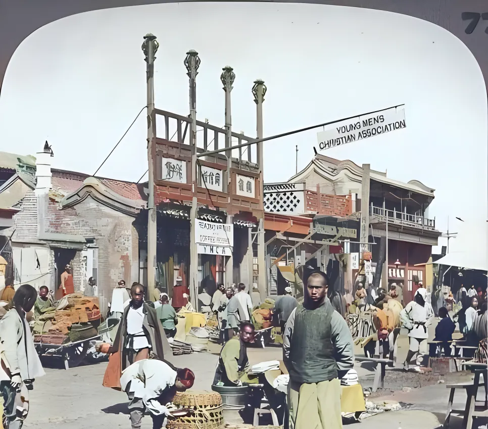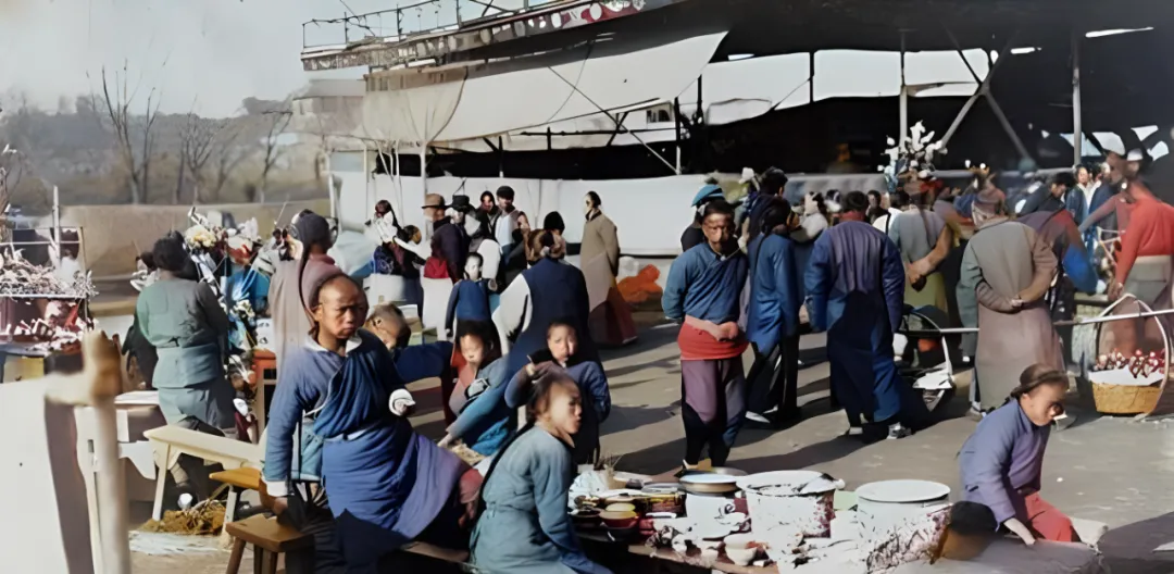 清末高清彩色老照片:庙会小吃摊;前门大街;敦煌集市;女子教会学校。