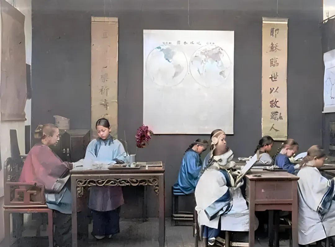 这个靠背直直的椅子是先生坐的高脚椅,雕花腿细,桌面压着圣经和毛边纸,黑墙上挂世界地理图,女孩们袖口收得紧,手里拿鹅毛笔,灯影下字一行行往前挪。妈妈说,以前姑娘读书不容易,鞋是三寸,心是八斗,一个字写直了,路也就走直了,现在孩子书包轻了,选择多了,念书却更要有定力。