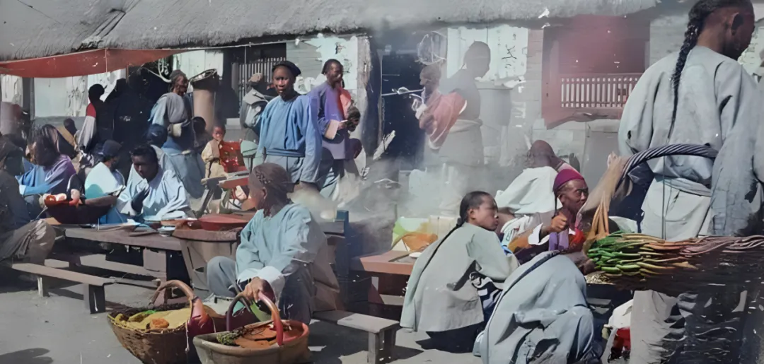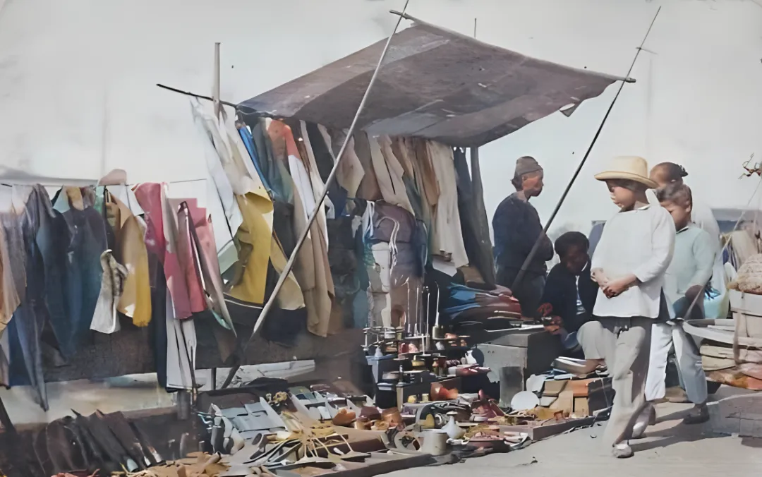 你手里这组清末彩照一翻开就有味儿了呀,热气腾着上来,摊布油光闪着亮,街巷的尘土被鞋底轻轻带起,老辈人的神情都活起来了,我们就照着图里这些物件慢慢说,认得的你点点头,不认得的也别急,听我掰扯两句就熟了。