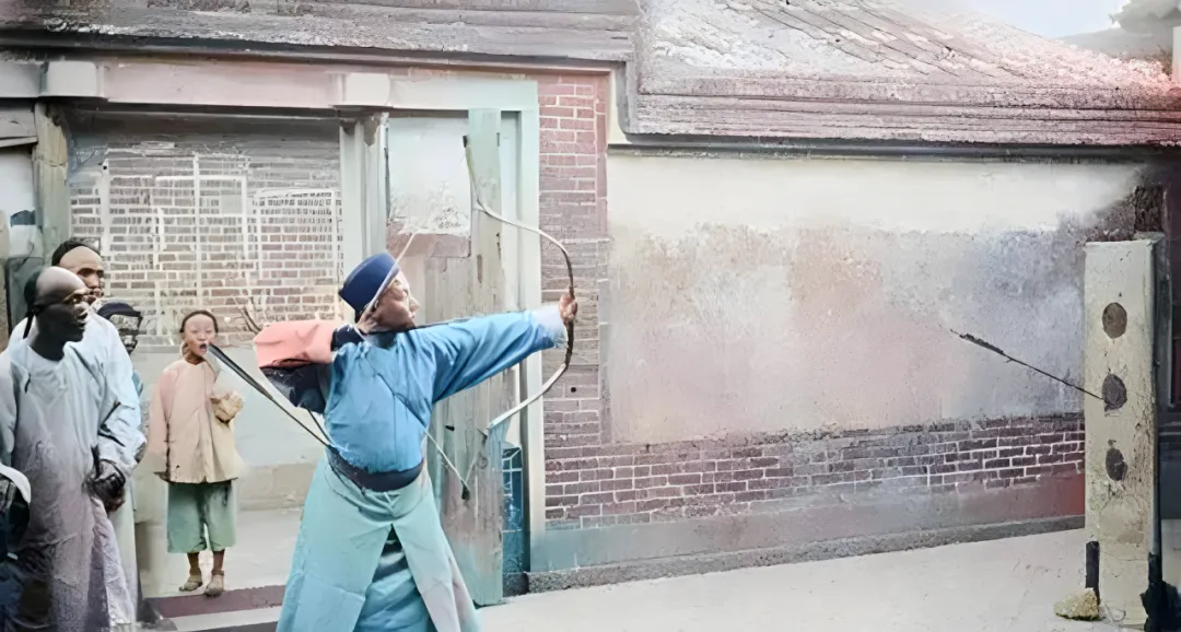 这个硬骨头似的叫角弓,牛角贴筋,弦拉到腮边,靶子却只离他五六米,三孔木靶立在墙根,旁边人伸着脖子看,他屏着一口气,箭簇轻轻一颤就扎进去了。以前讲究手上弓眼的准,现在讲究跑步和力量,练法换了,一口气沉住的功夫,还是老一套。