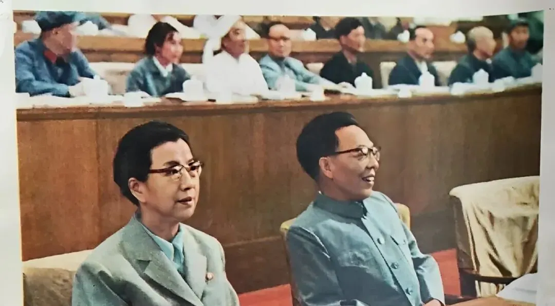 这两张都是看台照,沙发靠背裹着卡其布罩,前排茶几上摆暖水瓶和白瓷杯,灯光暖黄,人物一个穿军装一个穿浅灰套装,身前立着两支白色话筒,角度稍一换,笑意也跟着换了味儿,爷爷说以前出活动,衣服熨帖是门学问,坐下要把后摆理顺,不然相纸一晒,全城都能看出邋遢。