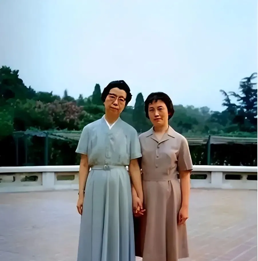 这个画面叫牵手照,浅青和米灰两色连成一片,腰间细细一根带,把裙摆勒出褶儿来,手心贴着手心,站姿不端着,反而更亲近,妈妈说那时拍照难得这么随意,多半是摄影师熟人,喊一声站好,就把心里那点柔和给捕住了,以前情谊讲究含蓄,现在朋友圈动不动就表白,虽热闹,却少了层耐心。
