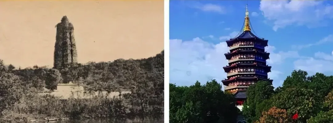 杭州保俶塔 雷峰塔对比