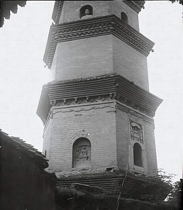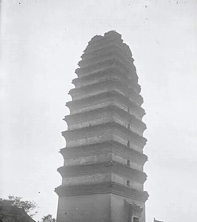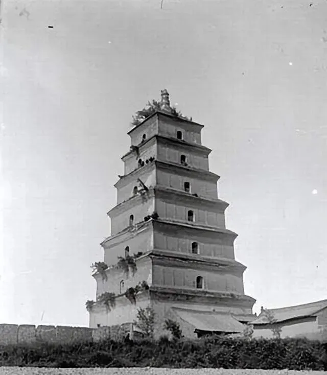 图中这座折腰收分的砖塔叫小雁塔,砖色发灰,层层檐口像叠起来的碟子,边角还长着野草,可见那会儿没人专门修剪,奶奶说以前去城南赶集,远远看见这塔尖就知道方向对了,塔是老城的路标,现在开导航了,抬头看塔的人少了。