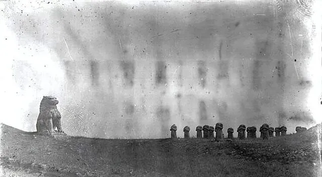 远处那只蹲着的兽和一排石柱在土坡上排成线,天光淡,地势缓,风像从几千年前吹来,小时候我不敢在这儿说话,妈妈提醒小声些,打扰了不好,现在旅游团到点就走,快门咔咔响,安静却难得。